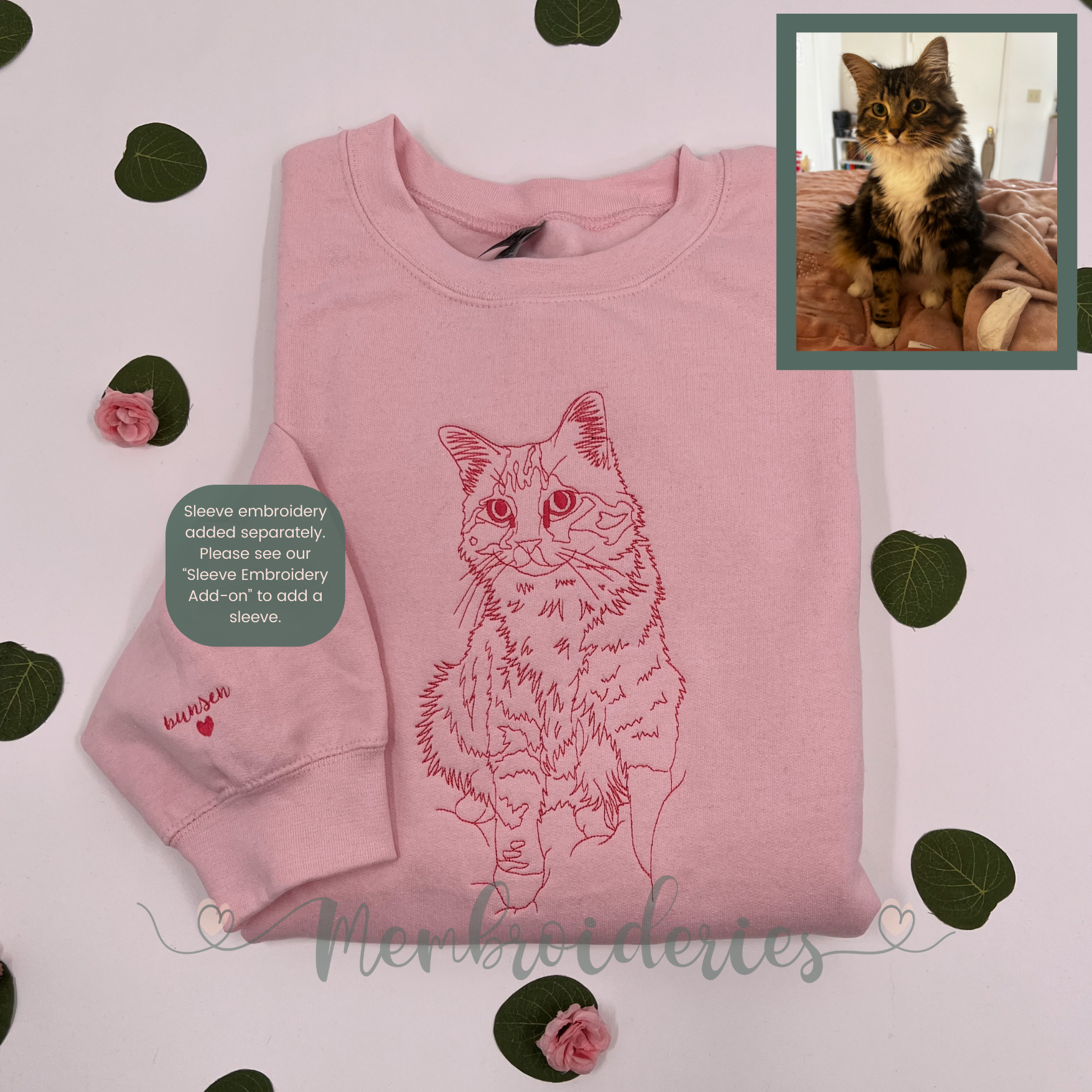 Gift your loved ones our extraordinary Custom Pet Portrait Membroidered Sweatshirt and make your cherished memories will last a lifetime. Fully customizable, each sweatshirt features a carefully hand-drawn outline of your favorite photo, ensuring a unique masterpiece that captures you and your loved ones hearts.