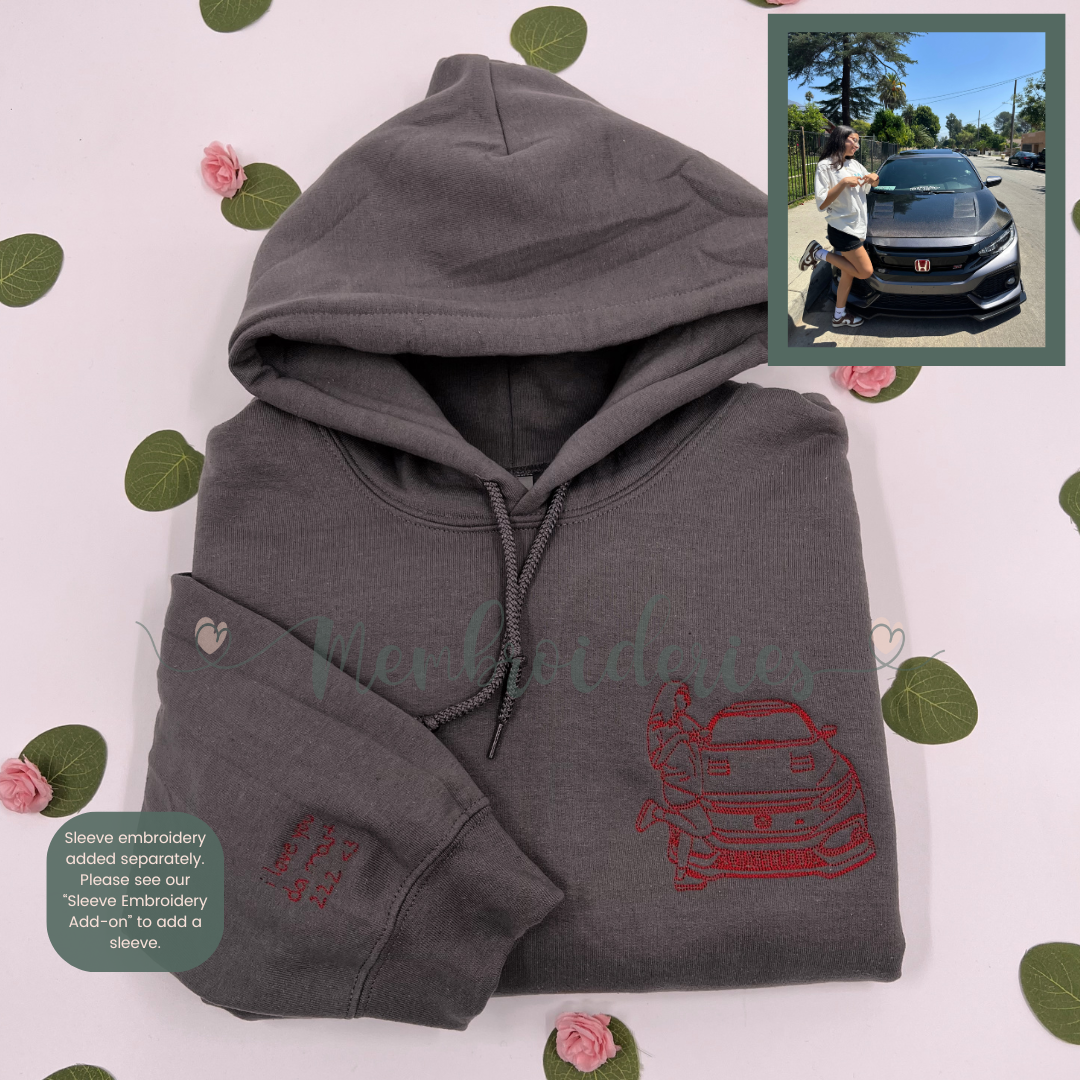 Gift your loved ones our extraordinary Custom Car/Motorcyle Embroidered Hoodie and make your cherished memories will last a lifetime. Fully customizable, each hoodie features a carefully hand-drawn outline of your favorite photo, ensuring a unique masterpiece that captures you and your loved ones hearts.