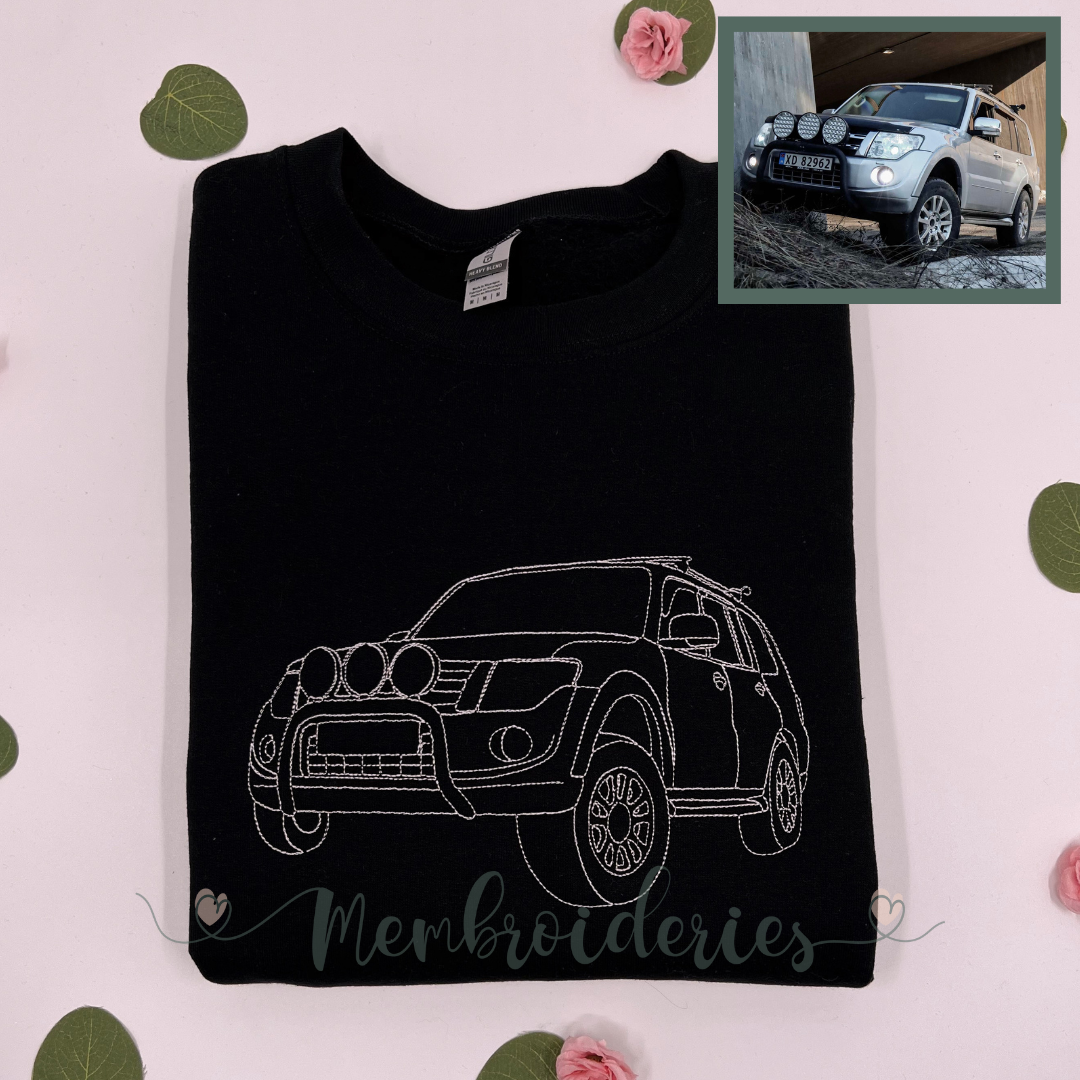 Gift your loved ones our extraordinary Custom Car/Motorcycle Membroidered Sweatshirt and make your cherished memories will last a lifetime. Fully customizable, each sweatshirt features a carefully hand-drawn outline of your favorite photo, ensuring a unique masterpiece that captures you and your loved ones hearts.