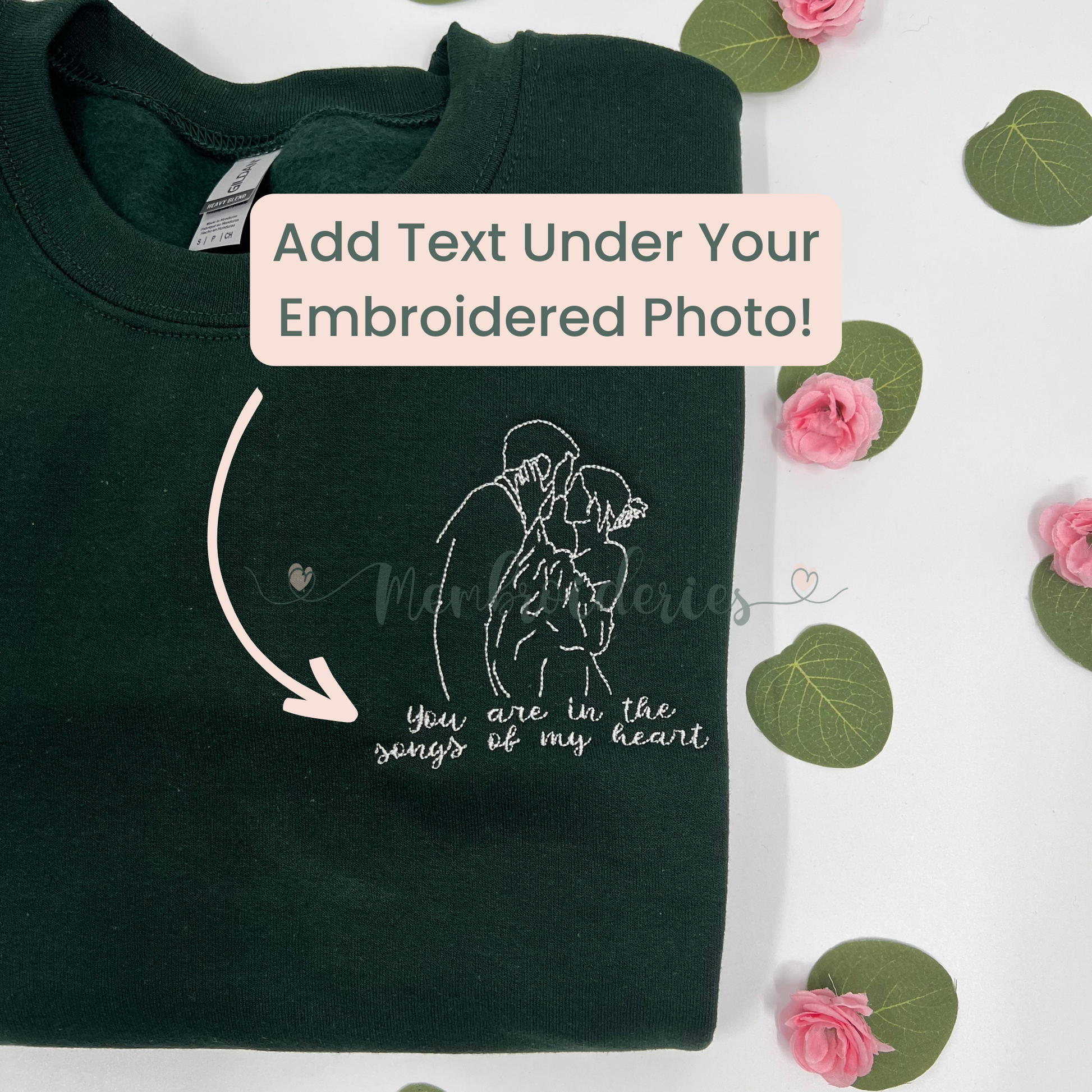 Add a special touch to your embroidered photo by getting a date or phrase under your embroidered photo!