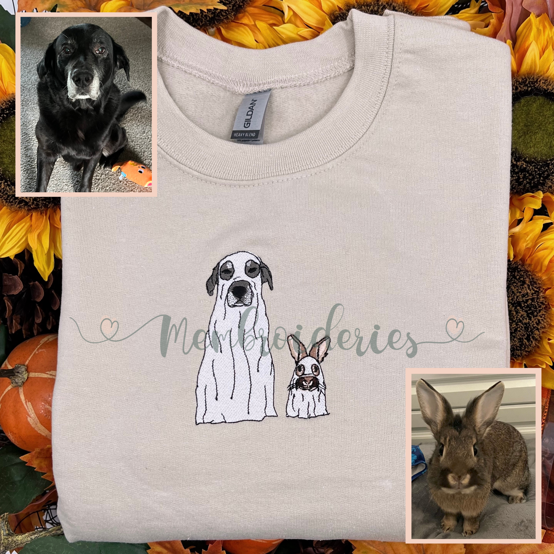 We are approaching everyone's favorite time of year - HALLOWEEN! Put your pets in the spotlight this spooky season with our Custom Ghost Pet Halloween Membroidered Crewneck! It's spooktacularly personalized, featuring custom images of your beloved fur babies. Keep your pets close to your heart this season and be the envy of all the other Halloween loving pet parents!