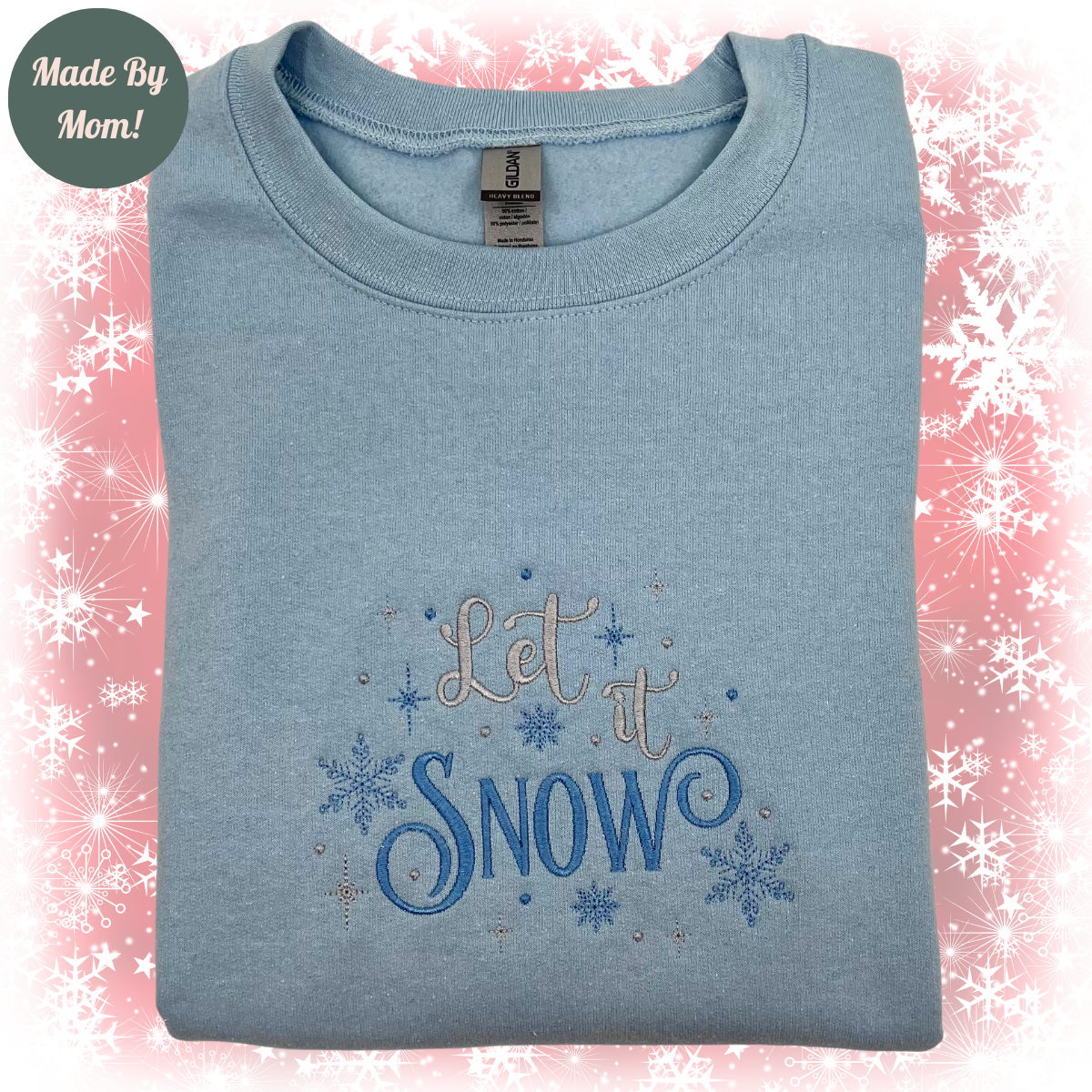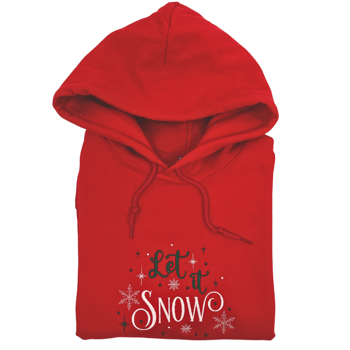 - Stay cozy with our Let It Snow Embroidered Hoodie/Sweatshirt