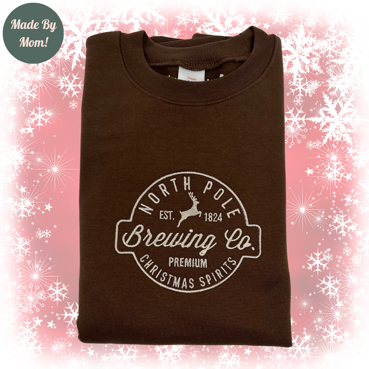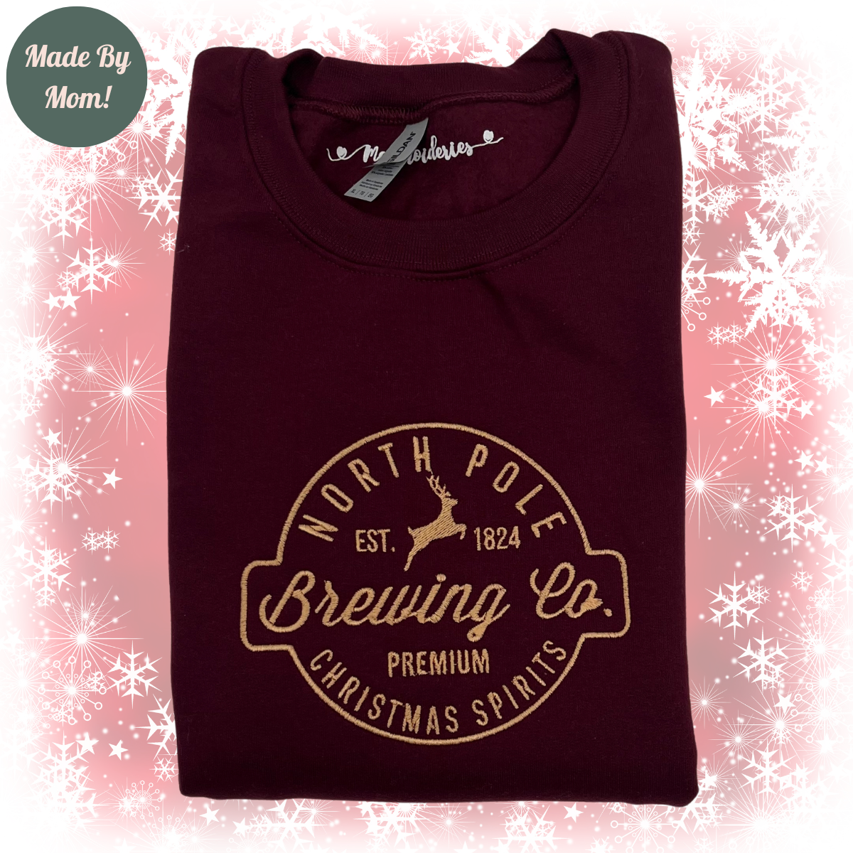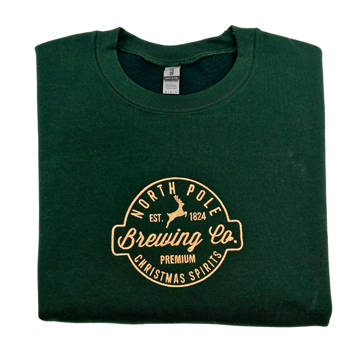 Stay cozy and festive this holiday season in the North Pole Brewing Co. Embroidered Christmas Sweatshirt. Made with a comfortable blend of cotton and polyester, this high-quality sweatshirt features intricate embroidery that's perfect for craft beer and brewery lovers alike.
