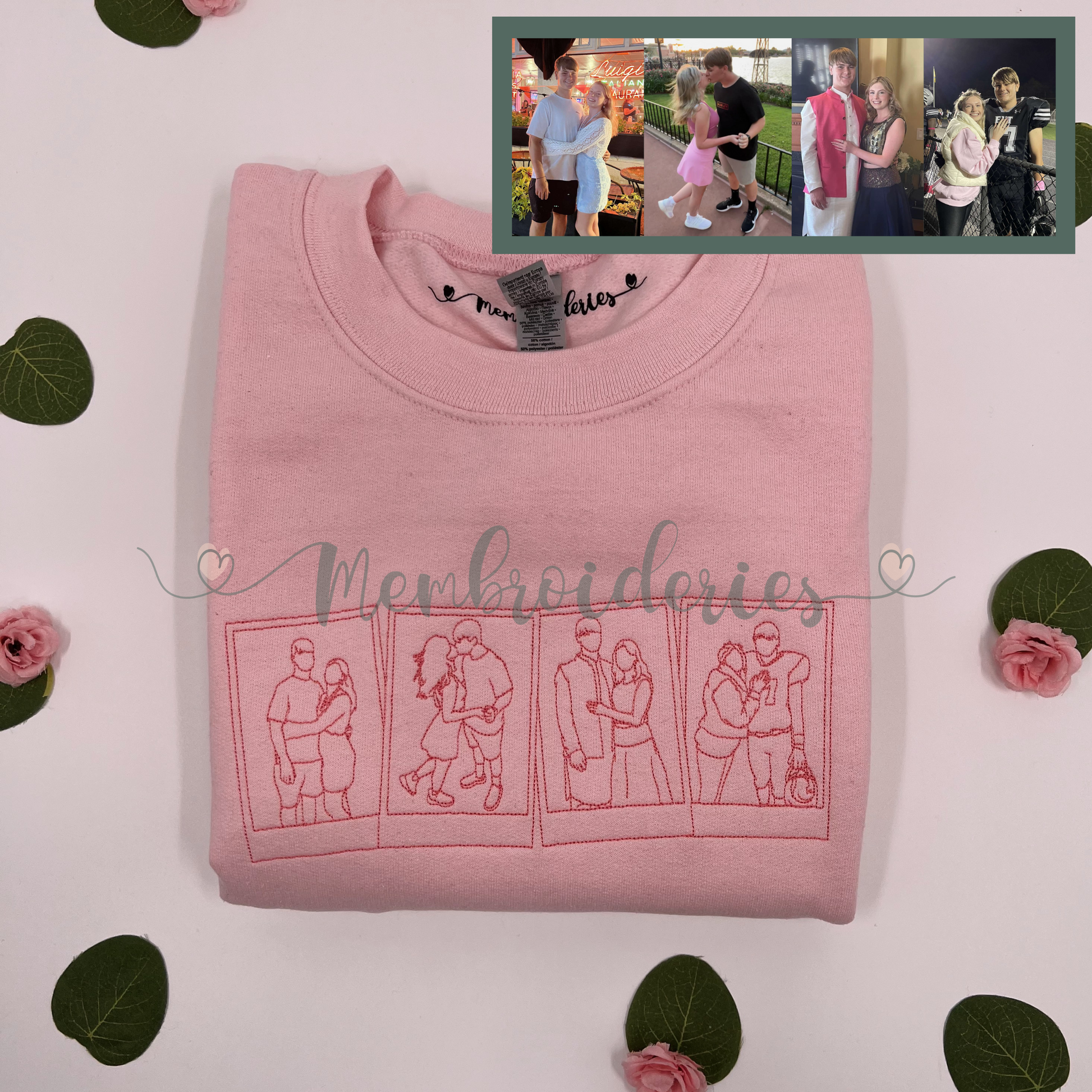 Gift your loved ones our extraordinary Custom Photo Embroidered Sweatshirt and make your cherished memories will last a lifetime. Fully customizable, each sweatshirt features a carefully hand-drawn outline of your favorite photo, ensuring a unique masterpiece that captures you and your loved ones hearts.
