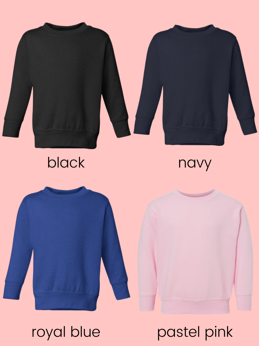 We are introducing toddler size crewnecks so that you can match with your favorite little loved ones!